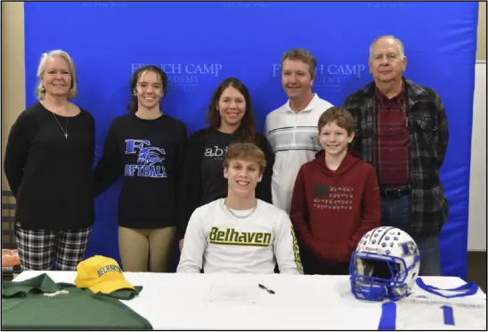 Avery Summers will attend Belhaven University to play football in the fall of 2024. Pictured here with family members from left to right: Jean Cochran, Anna Summers, Karla Summers, Lonny Summers, and Jerry Cagle; seated in front is Avery Summers, and to his left, AJ Summers.