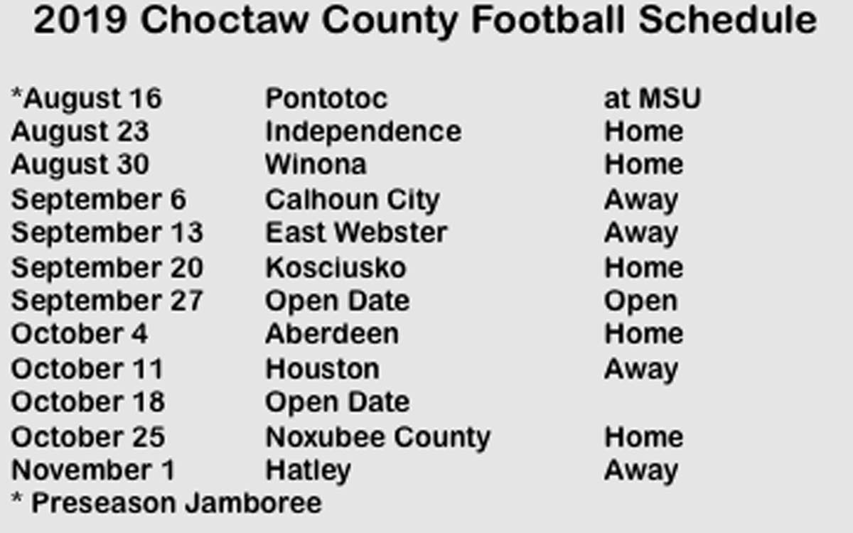 A challenging 2019 football schedule for Choctaw County will include a team that won four state championships in the past six years and a return visit to Mississippi State’s Davis Wade Stadium. There are also currently two open dates that coach Ben Ashley is hoping to fill.