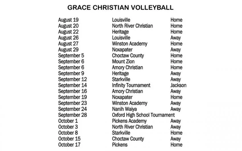 Grace Christian opened the season Monday with a match against Nanih Waiya. The Lady Eagles will play in a tournament at Tuscaloosa Christian School of Alabama this weekend, with three matches Friday and two Saturday.