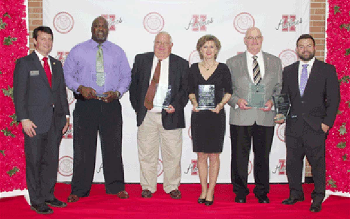 Prior to the 6 p.m. banquet, inductees enjoyed an informal welcoming reception at the president’s home. Athletics Director Andy Wood presented each inductee with a framed sports photo from his or her days as a Bulldog. Afterward, inductees and their families enjoyed a musical performance by the Holmes Chorale in the Chapel on the Hill. Next, honorees and guests had the opportunity to view a student art gallery and mingle with Holmes’ mascots, Bully and Major, until time for the banquet.
