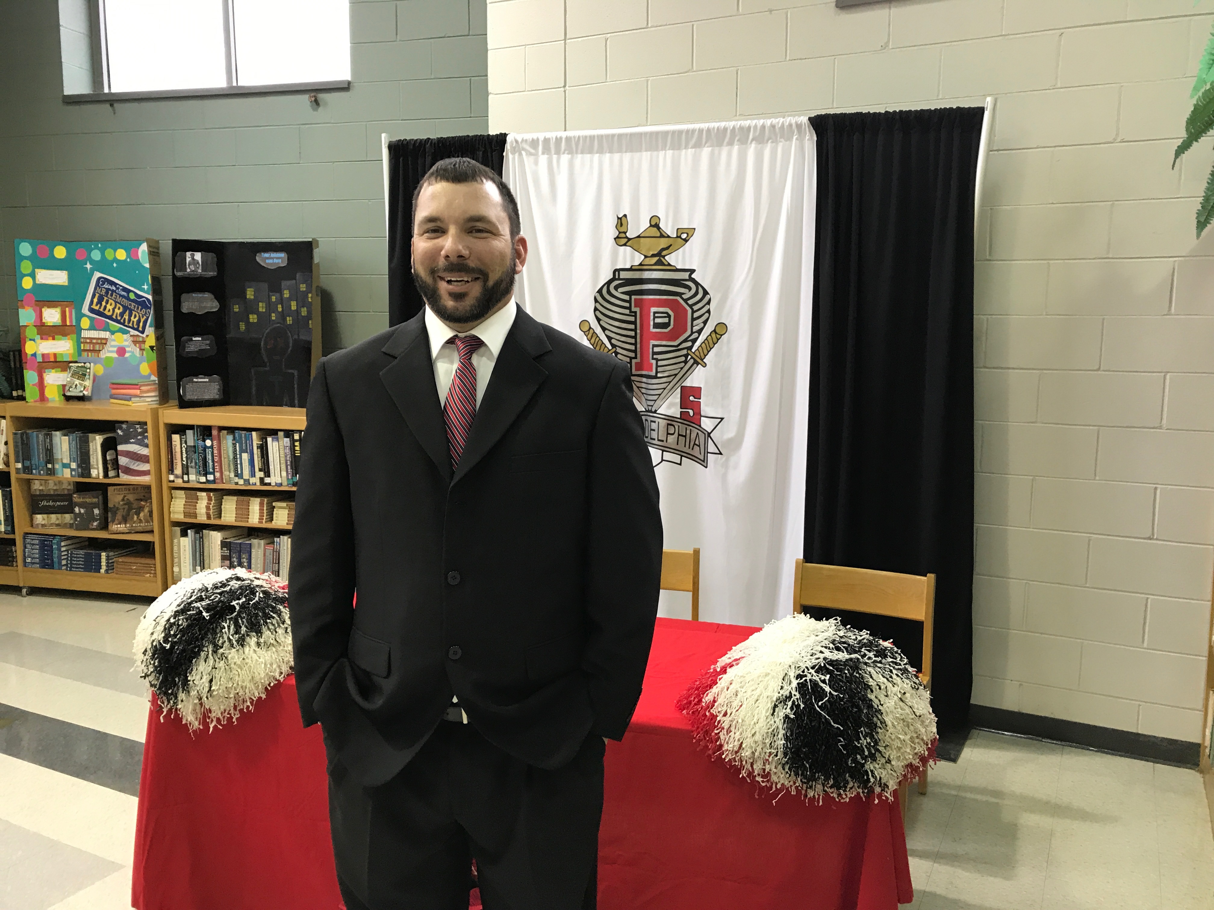 Philadelphia Public School District superintendent Lisa Hull and high school principal Michael Tardy offered introductory remarks before officially naming Frey as head coach.