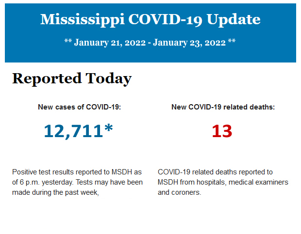 Listed below is the daily COVID-19 update for the state of Mississippi.