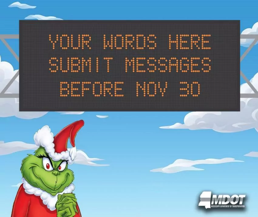 Traffic safety messages appear on DMS boards along highways and interstates throughout Mississippi. These 12 days of messages will revolve around Christmas-themed movies, songs, and characters. However, any local emergency messages and traffic updates automatically override scheduled messages already on the DMS boards.