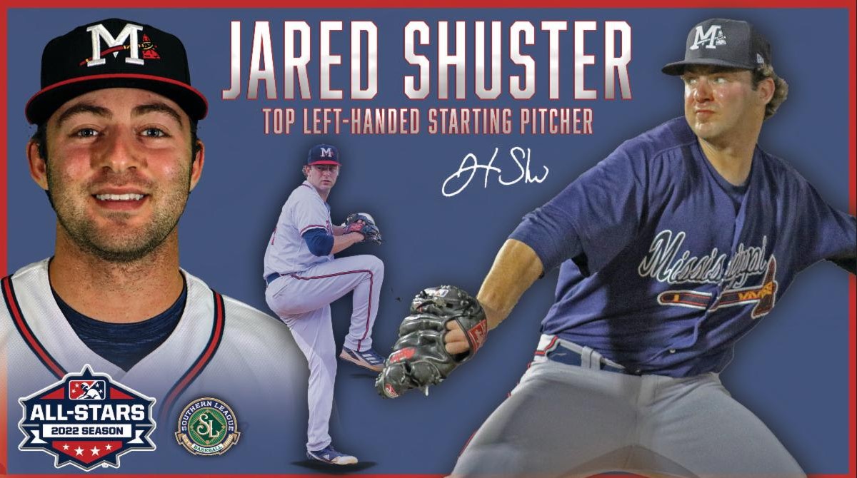 Minor League Baseball™ (MiLB™) recently announced the league awards and All-Star teams for the three leagues that make up the Double-A classification. In a vote of league managers, Mississippi Braves pitcher Jared Shuster was selected as the Southern League's top Left-Handed Starting Pitcher for 2022.