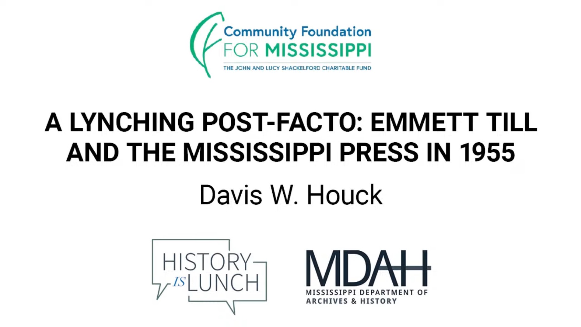 On May 3, 2023, Davis Houck presented “’A Lynching Post-facto’: Emmett Till and the Mississippi Press in 1955” as part of the History Is Lunch program.