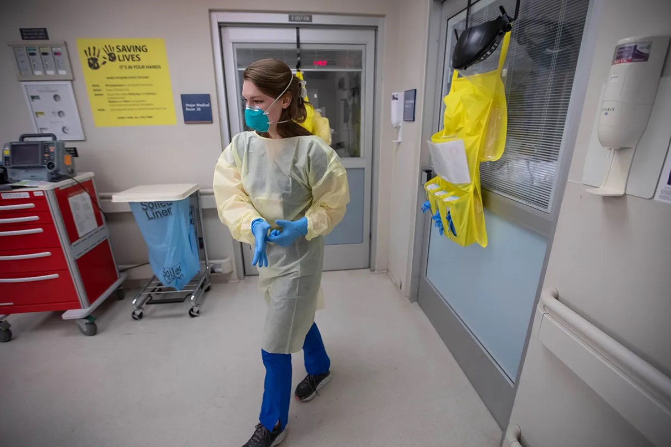 “That’s not even factoring in those who are out sick,” said Kim Hoover, a registered nurse with the hospital association. “You have nursing supervisors who come into work Monday morning and find out six ICU nurses are exposed and literally, as of that morning, can’t take patients now. It’s so fluid it changes from shift to shift.”