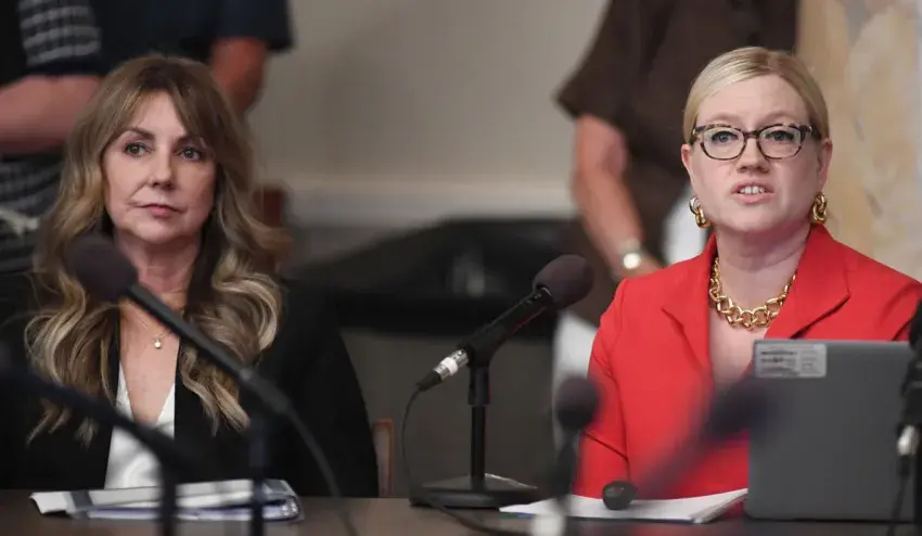 U.S. Department of Health and Human Services Deputy Assistant Secretary for the Office of Early Childhood Development Laurie Todd-Smith (left) and Lindsey Burke, deputy chief of staff for policy and programs at the U.S. Dept. of Education, answer questions posed by legislators during the legislative school choice subcommittee meeting at the State Capitol, Monday, Aug. 25, 2025 in Jackson. Credit: Vickie D. King/Mississippi Today