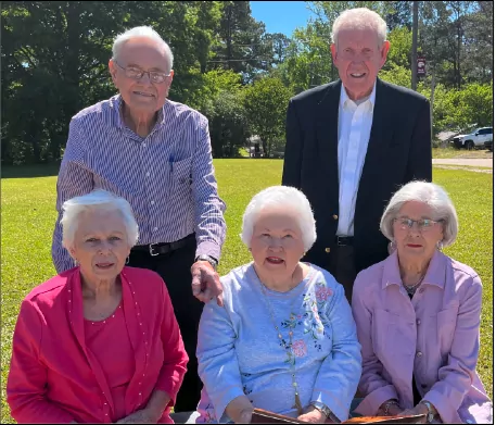 Getting excited about Saturday’s recognition and reception honoring EHS Decade of ’50s graduates are (seated) Elizabeth Allday Weddle, 1958; Sarah Hodges Waits, 1952; Gladys Smith McCain, 1952; (standing) Willie Weddle, 1958; and Boyd Meece Edwards, 1958.