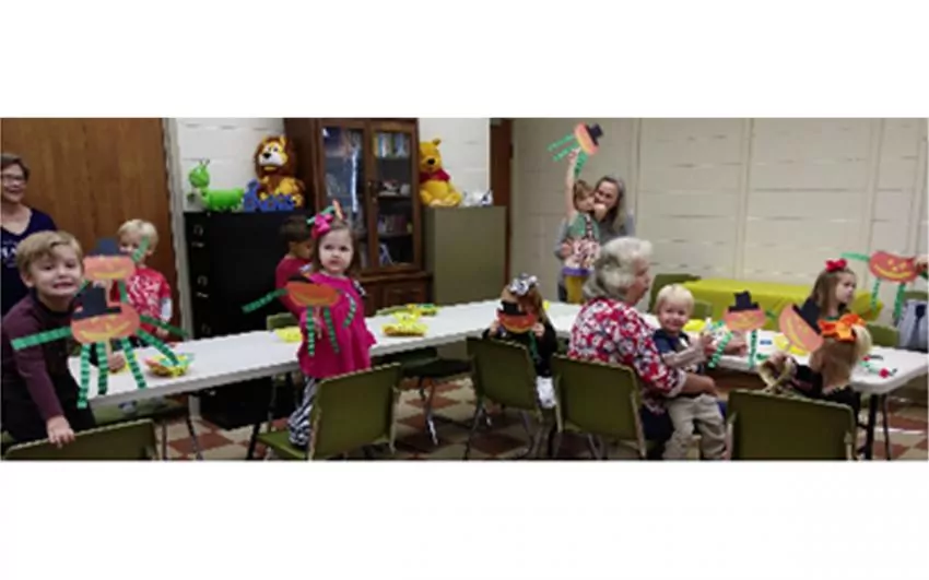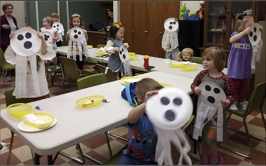 They played a Halloween game to knock over the ghosts, and sang the “Hello Song,” and “Scarecrow, Scarecrow” before Ms. Anita read “The Night Before Halloween.”