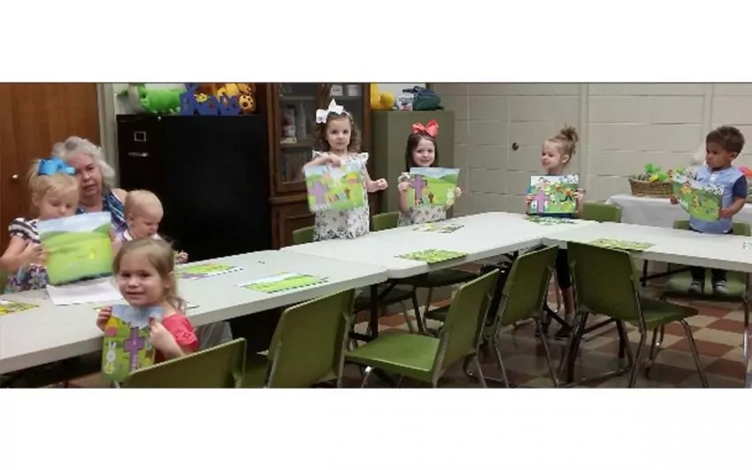 They sang ”Hello Song,” used the flannel board for “Jelly Bean Countdown,” “Bunny Hop Song,” “5 Little Bunnies,” a finger play activity, and “Jesus Died and Rose Again.”