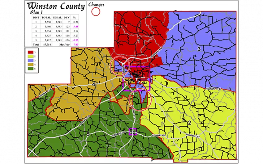 The Winston County Supervisors will conduct a public hearing on January 3 to consider new supervisor and justice court district lines.