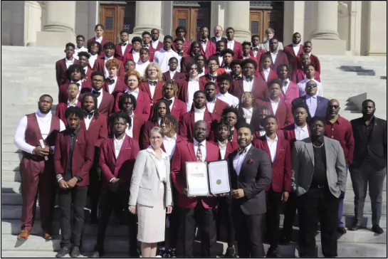 Senators Rod Hickman and Jenifer B. Branning on Thursday, February 15, 2024, led the Mississippi Senate’s presentation of Senate Resolution 26 to the Louisville High School Wildcats football team, and Head Coach Tyrone Shorter for winning the 2023 MHSAA Class 4A State Championship - their third overall.