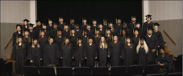 Graduates included (first row, from left) Asya Ferguson of Ridgeland, Brittany Dunn of Philadelphia; Mia Wells of Union, Carmen Gardea, Jocelyn Miramontez, and Mayling Orozco, all of Carthage; Natalie Atwood of Lake, Heather Shoemaker of Forest, Alexandria Williamson and Anijah McCall, both of Louisville; and Icenzio Moore of Lake; (second row, from left) Katelyn Lewis and Maekla Sullivan, both of Philadelphia; China White of Union, Savannah Martinez of Decatur, Adrianne Wilson of Newton, Amber Plummer of Forest, Christine Plummer of Union, and Carmela Taylor, Javiera Cardenas Rodriguez, and Brian Parra, all of Morton; (third row, from left) Jaqueline Mejia Maqueda of Carthage, Rheon Hassell of Ackerman, Rebecca Wright and Jarrod Edwards, both of Union; Alexander Shore of Louisville, Marlo Griffin and Shane Shepard, both of Carthage; E