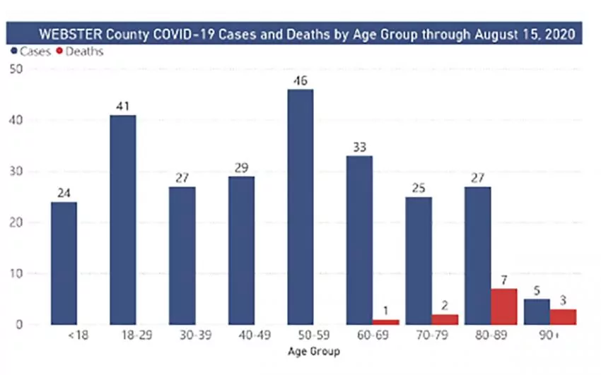Locally as of Monday, 571 positive test results had been reported to date — an increase of 88 cases over the previous seven days. The county’s death toll stands at 15 which is an increase of 1 over the past week. The state has 61,125 total cases with 1,711 deaths recorded from COVID-19.