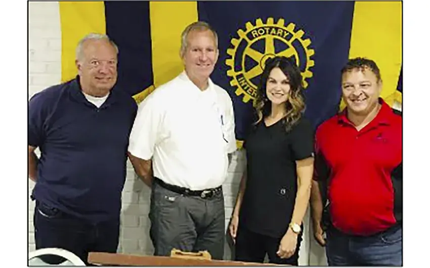 The Louisville Rotary Club inducted two new members on May 26. Club membership chairman, Steve Anderson, performed the induction ceremony with the assistance of club President Brooke Eaves who gave the new members their certificates. The new members are Mike Creely and Kalvin Hackey. Both new members are with Winston Plywood.