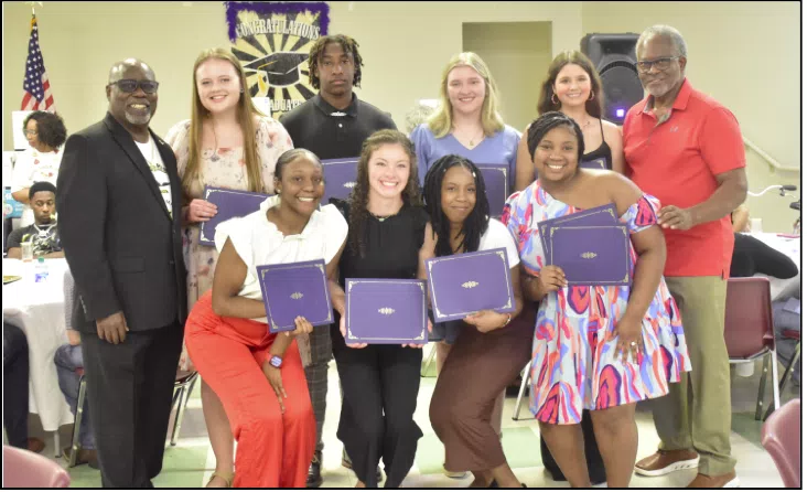 Dr. I.D. Thompson and Rev. Haywood Hannah are pictured with scholarship recipients (in no particular order): Aniyah Nash, Averie Gundy, Markeya Fleming, Evee Stevens, Journee Banks, Braxton Shumaker, Rebecca Boston McCrory, and Allie McCoy. Not pictured are Simmons Brooks and William Stokes Loden.