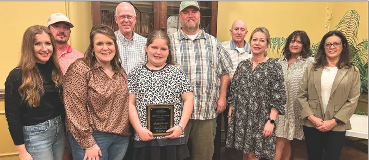 East Webster Elementary School student Leigha Mitchell was honored as the Webster County Board of Education Student of the Month for November at the board s Nov. 11 meeting. In addition to board members and the superintendent, she is accompanied by her parents, Brian and Laura Mitchell, and EWES Principal Jennifer Carver.