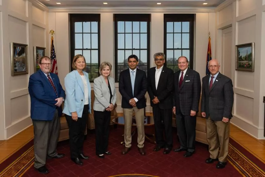 Mississippi State’s distinction as one of the nation’s leading universities in agriculture research brought prominent ag advocates to the Starkville campus Friday [April 22]. U.S. Senator and former Mississippi Agriculture Commissioner Cindy Hyde-Smith, third from left, Dr.