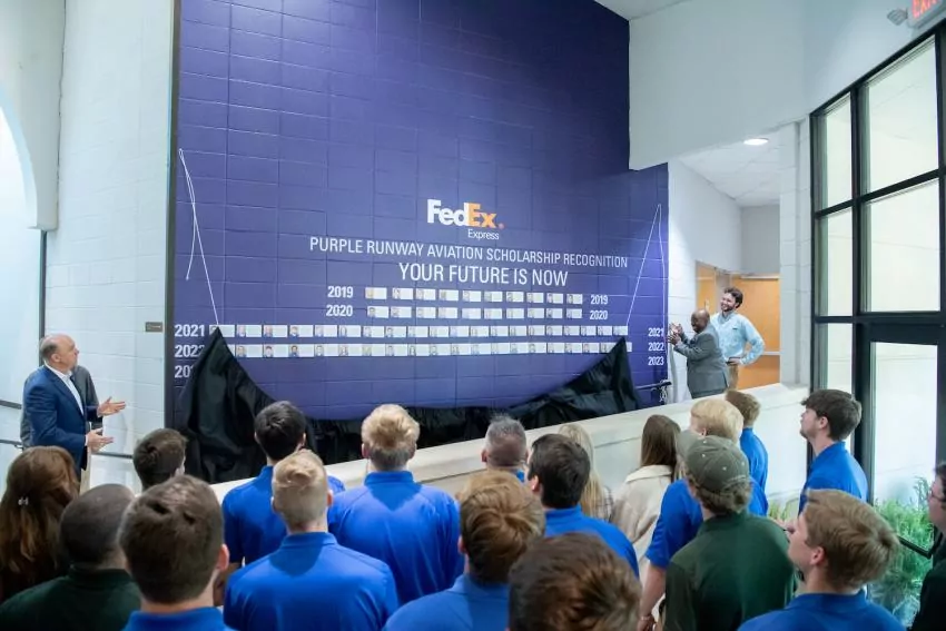 CLEVELAND, Miss.—FedEx officials recently recognized 50 Delta State University Commercial Aviation students who received Purple Runway Aviation Scholarships during the 2022 FedEx Takeover Day.