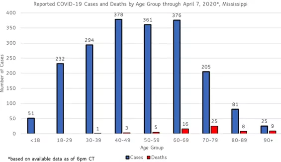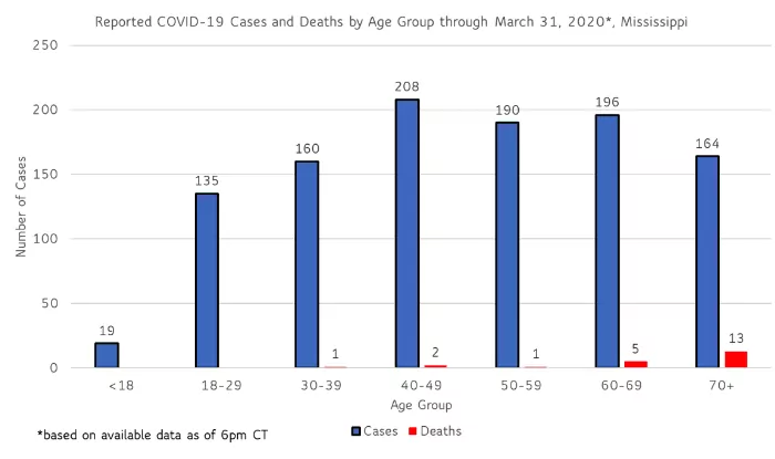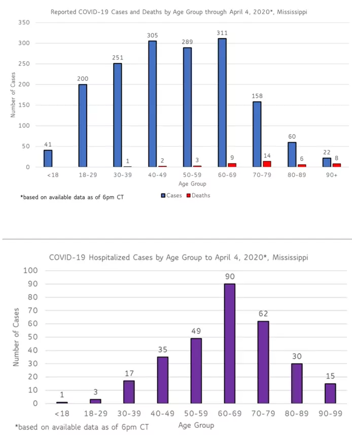 The Mississippi Department of Health reported 1073 COVID-19 positive persons in the state with 22 deaths.