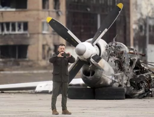 “Two years ago, here, we met enemy landing forces with fire; two years later, we meet our friends and our partners here,” Zelenskyy said as he met the dignitaries at Hostomel airfield just outside of Kyiv, which Russian paratroopers unsuccessfully tried to seize in the first days of the war.