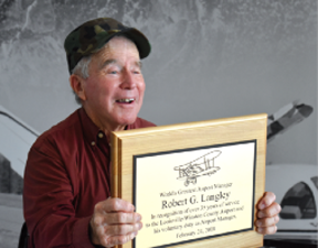 Langley was recognized at a Feb. 24 Experimental Aircraft Association event at the airport for his 35 years of service to the airport and local aviation. The event and dedication of the second floor observation deck at the airport were to honor the Langley's legacy.